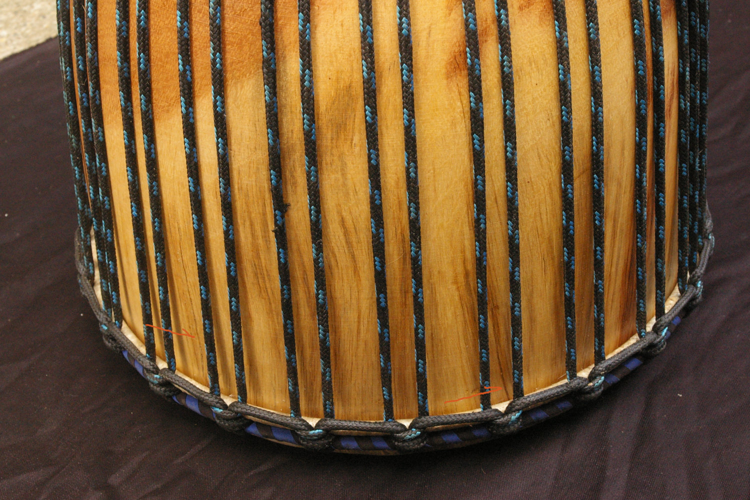 レンケ材大口径。キレよくラウドなレンケサウンド。胴内で回るような響き。ずーんと響く低音。大きいの、いいですね。皮膜塗装仕上げ。白太部分がありますが、胴内側ではごく一部。白太部分のヒビは表面のみです。音色耐久性に遜色ありません。