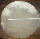 CS-C-169 皮の直径:62-63cm 重さ:236g ¥9,000 (税込み) SOLD ありがとうございました パキスタンの水牛皮。脱毛脱色。ヤギ皮のとても厚い皮位の感触です。 左端 赤マーク部分少し薄くなっています。 十分大きな太鼓に張れます。 | CS-C-170 皮の直径:62cm 重さ:248g ¥9,000 (税込み) SOLD ありがとうございました パキスタンの水牛皮。脱毛脱色。ヤギ皮のとても厚い皮位の感触です。 左端 赤マーク部分薄くなっています。 十分大きな太鼓に張れます。 |